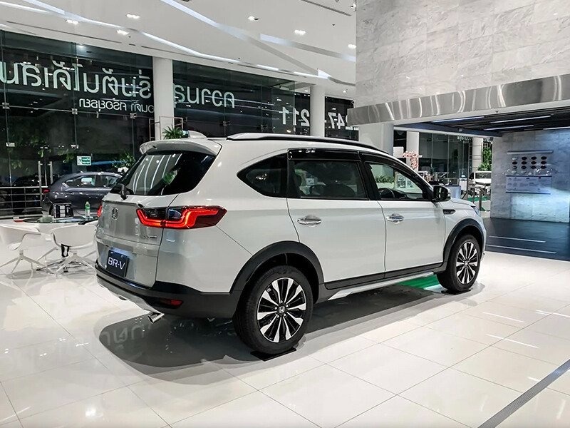 Thường các mẫu xe khác trong gia đình sẽ có dải chrome chạy ngang lô-gô, ngôn ngữ đôi cánh của Honda, nhưng BR-V L thì không, có lẽ dải đèn phanh chính giữa đã thay thế chức năng nhận diện thiết kế của phần đuôi xe. Thiết kế cản va hai bên ở phần đuôi xe tương tự như phần đầu xe, móc chữ C và hướng vào trong.